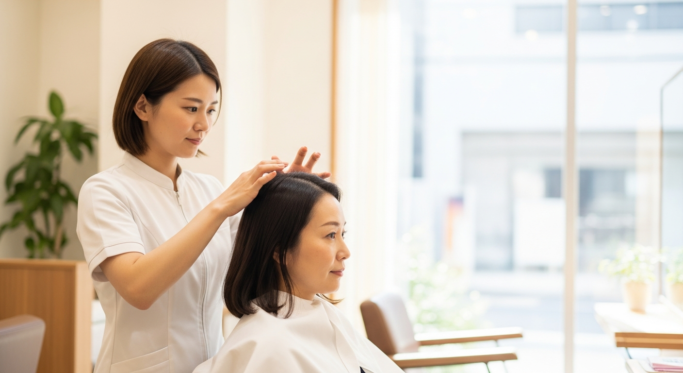 A. 30代後半から60代まで、幅広い年齢層の女性にご利用いただいております。「髪のボリュームが減ってきた」「分け目が目立つようになった」といったエイジングサインを感じ始めたタイミングでご相談に来られる方が特に多い傾向にあります。